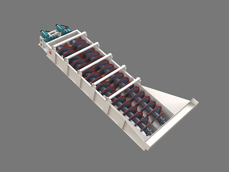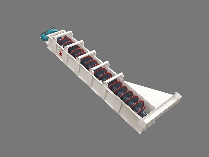 LX砂石洗選機(jī)系中螺旋洗砂機(jī)利用物料不同粒度和密度的顆粒在流體中具有不同的沉降速度的特性——粒度細(xì)、密度小的顆粒沉降速度慢;而粒度大、密度大的顆粒沉降速度快,將粉塵和雜質(zhì)與砂分離開來。并在螺旋片的均勻攪動下,達(dá)到濾水去雜、提升輸送的目的。